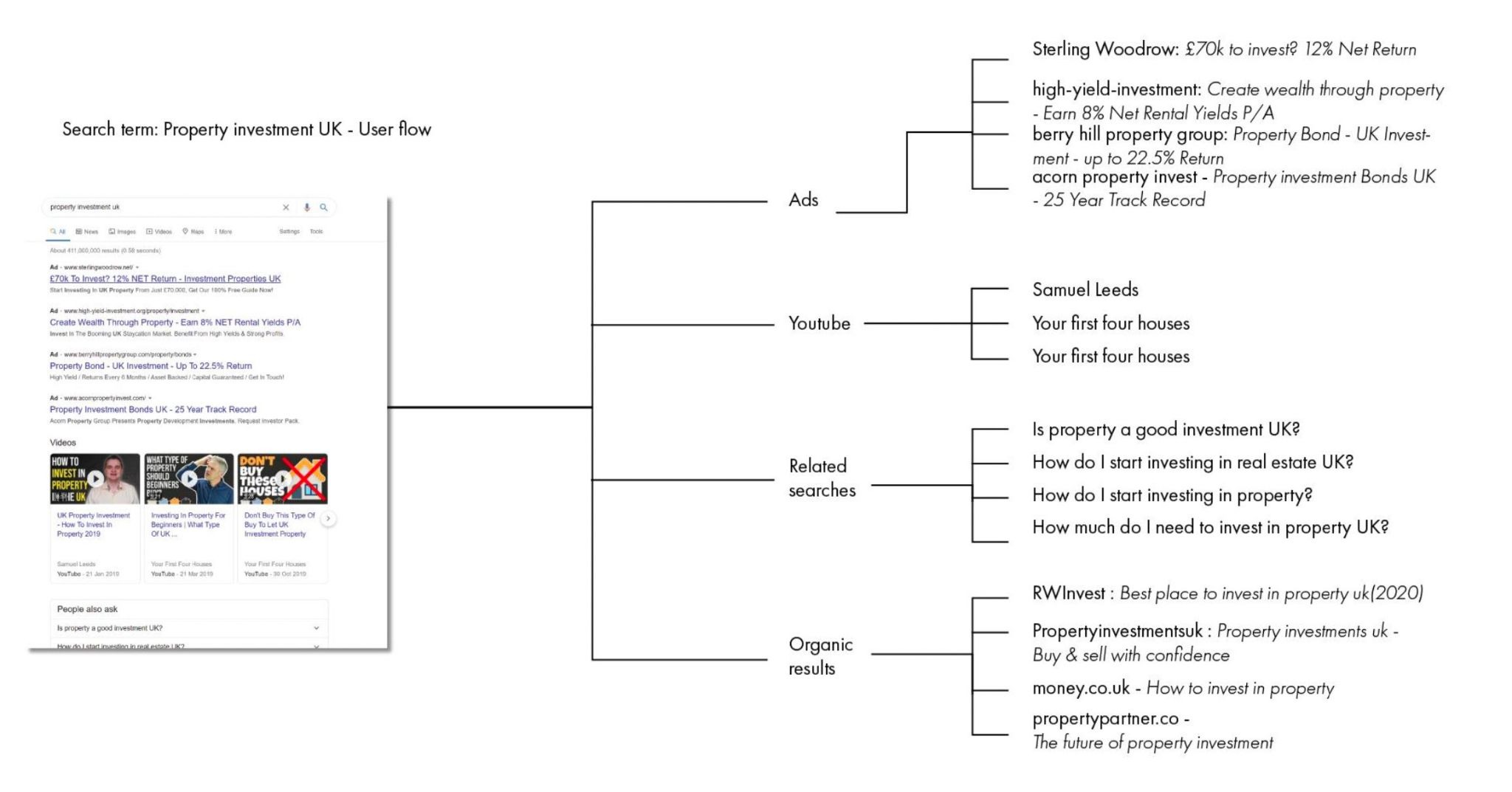 The top of the funnel, people searching for "property investment UK" - had over 3,500 monthly searches.