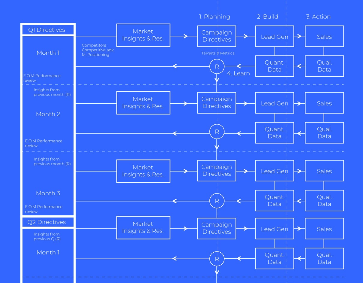 Each cycle fed into the next. The more data we collected, the more informed the decisions became. This wasn't "set and forget" marketing, that approach would not work especially considering their customer base - ‘savvy investors’. The team needed a brand system that was designed to get smarter over time, learning from market insights.